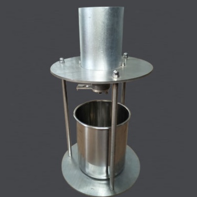 5.根据试验的细集料规格选择漏斗,对规格0.075mm~2.36mm的细集料选用漏出孔径为12mm的漏斗,对规格0.075mm~4.75mm的细集料选用孔径为16mm的漏斗,将漏斗与圆筒连接安装成一整体。关闭漏斗下方的开启门,在漏斗下方置接受容器。